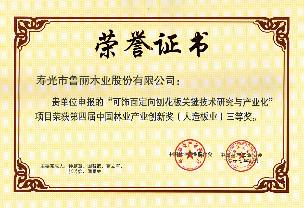 金魯麗定向刨花板榮獲...
